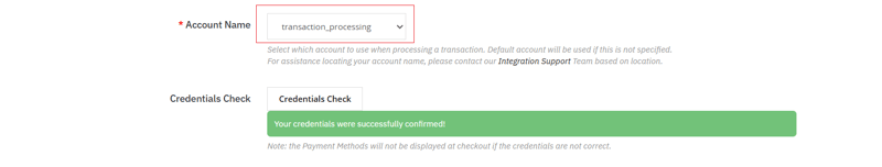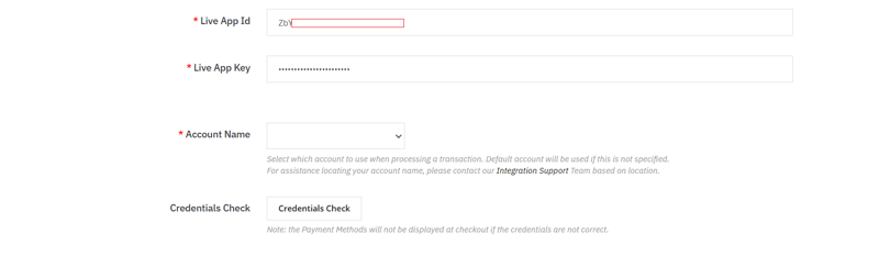 - Live Account Name – subkonto dla sklepu, w bramce płatniczej, wartość ta wybierana jest z listy, która pojawi się dopiero po sprawdzeniu prawidłowego wprowadzenia danych i kliknięciu przycisku Credentials check.